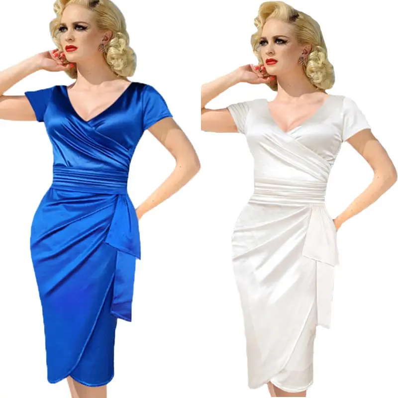 Material: Satin (sehr glatt wie seide)Design: Vintage, Elegante, Schlankeverbrauch: Party Kleid, Arbeit Kleid, Einkaufensaison: Sommer, Herbst Kleid dieses material gibt ihnen bequemes gefühl, es ist sehr weich, wenn sie es berühren.