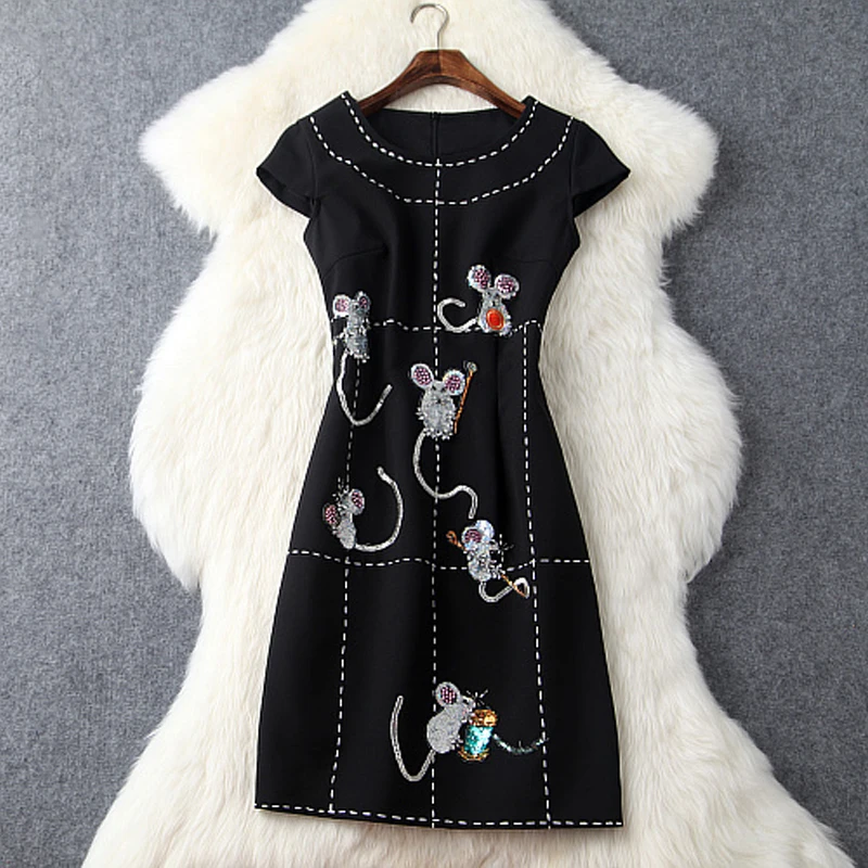 buy-now Frauen Schwarz Rose Baumwollmischung Tier Muse Stickerei Pailletten Bodycon Bleistift Kleid 2016 Herbst Neue Damen Hohe qualitt Vestidos