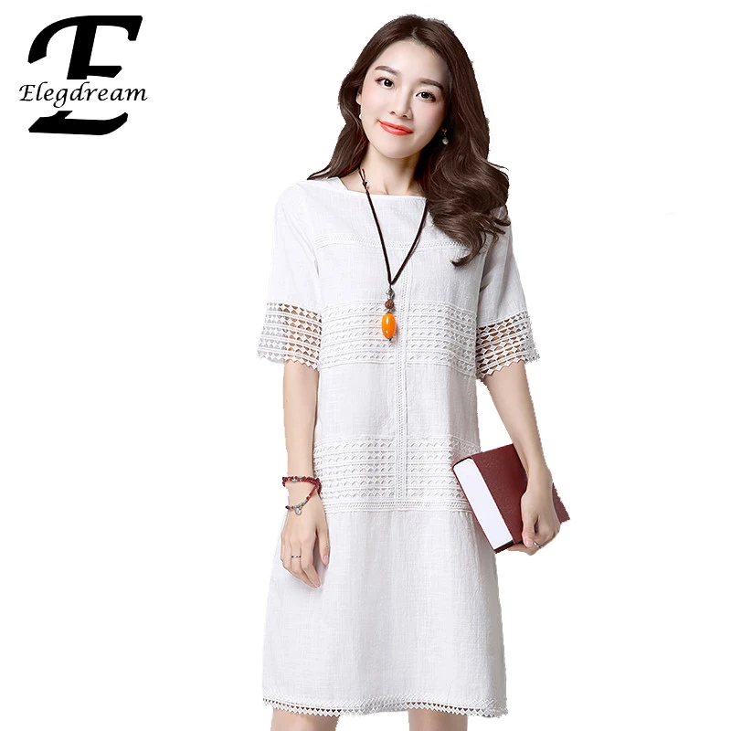 buy-now Kurze Beilufige Baumwolle Kleid mit Spitze Detail Grau 2016 Neue stil Alle Weies Quadrat Kragen Kleider fr Frauen Elegante Kleidung Zanzea