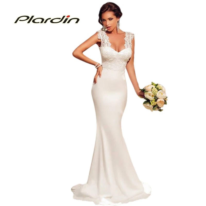 Plardin 2016 New Vestido De Renda Sexy Weie Bestickte Spitze Hochzeit Kleid LC60632 Vestido Longo Vestidos Femininos