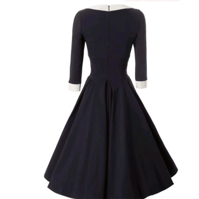 Einzelteilname:2016 herbst Frauen Hepburn Kleider Umlegekragen Volle Hülse Schwarze Beiläufige Partei Dicke Kleid Robe Rockabilly Vintage Plus Größe