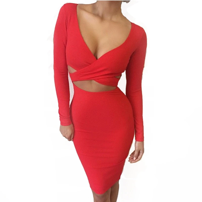 buy-now 2016 langarm winter frauen sexy Criss nigh club tragen tiefe V verband bodycon party kleider wei schwarz rot aushhlen kleid