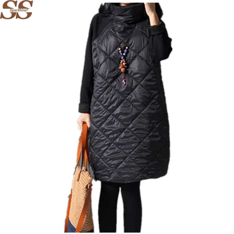 buy-now 2016 mode Herbst Lose Gerade Kleid Patchwork Schwarz Ropa Mujer Rollkragen Unten Weiblich Vestidos Tunika Winter Kleider
