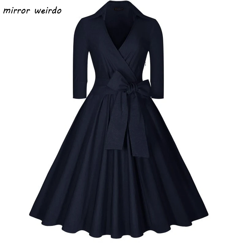 2016 neue Frauen Frhling Sommer 50 S Vintage Rockabilly Kurzkleid sexy Elegante Midi Schwarz Blau Kleid Plus Gre Damen kleidung
