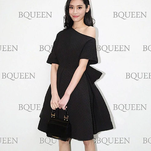 Hohe Qualitt 2016 Herbst Schulter Vintage Schwarze Frauen Kleider Trgerlosen Sen Bogen Eine Linie Partei Kleider Frauen