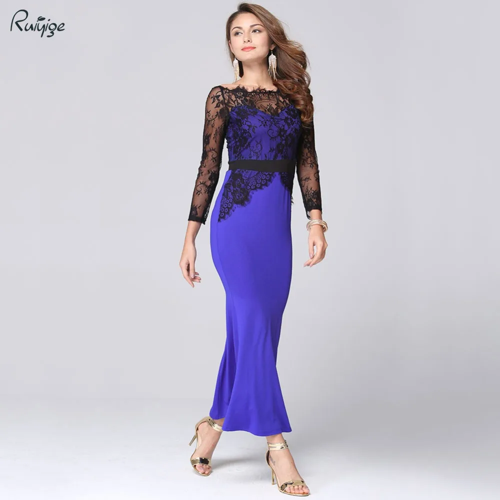 buy-now 2016 frhling Sommer Vintage Frauen Sexy Spitze Dnnes Kleid Plus gre Patchwork Tunika Lange Meerjungfrau-party Kleider Blau Schwarz Rot Q152