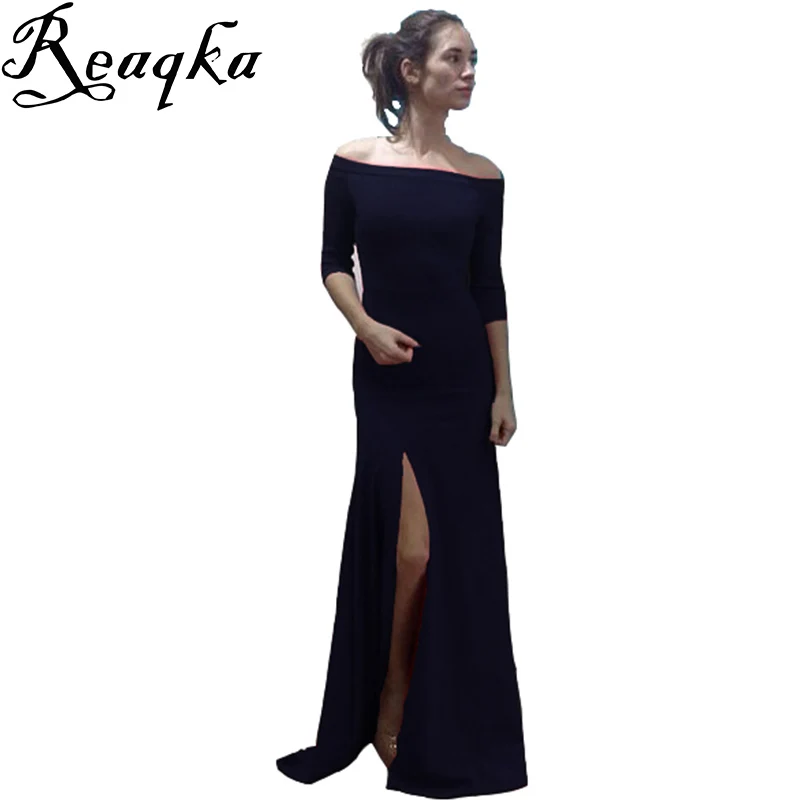 buy-now 2016 sommer Vintage Europa UNS Bodenlangen Split Kleid Fr frauen sexy Schwarz Rot Blau Slash neck Frauen Modekleidung kleider