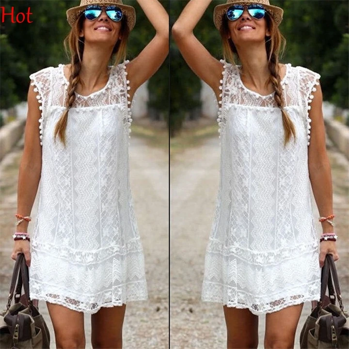 Heier Sommer Kleid Plus Gre Frauen Kleidung Lssig Strand Mini kleid Tassel Solide Wei Mini Wei Schwarz Spitzenkleid Vestido SV026434