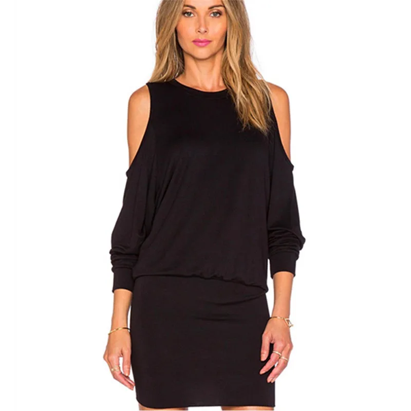 buy-now Heier Verkauf Frauen Sexy Frhling Kleid Bat Langarm Weg Schulter Bodycon Kleider frauen Kintted Mini Kurz Dnnes Kleid schwarz