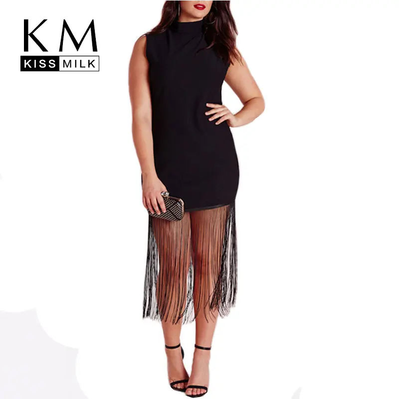 Kissmilk 2016 Frauen Plus Gre Dnne Reizvolle Schwarze rmellose Quaste Sommerkleid Bodycon Groe Gre 3XL 4XL 5XL 6XL Party kleid