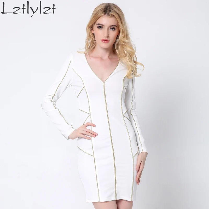 Lztlylzt Tiefem v-ausschnitt frauen kleider 2016 frhling herbst sexy elegante lange wei short abendkleid bro kleid weibliche vestidos