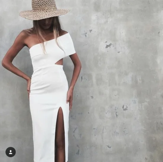 Celebrity White font b Black b font One Shoulder Open Fork Knee Length Bandage font b