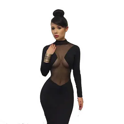 buy-now Sexy Club Kleid 2016 Marke Neue Frauen Schwarz Bandage Sheer kleid O hals langarm Geschfts Enges Kleid Knielangen arbeitskleidung