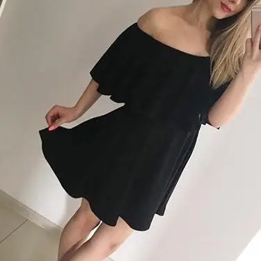 Sommer Frauen Kleider Sexy Off Slash Hals Schulter Rschen Mini Kleid Lose Beilufige Nette Party Kleider Rosa Schwarz Wei M0324