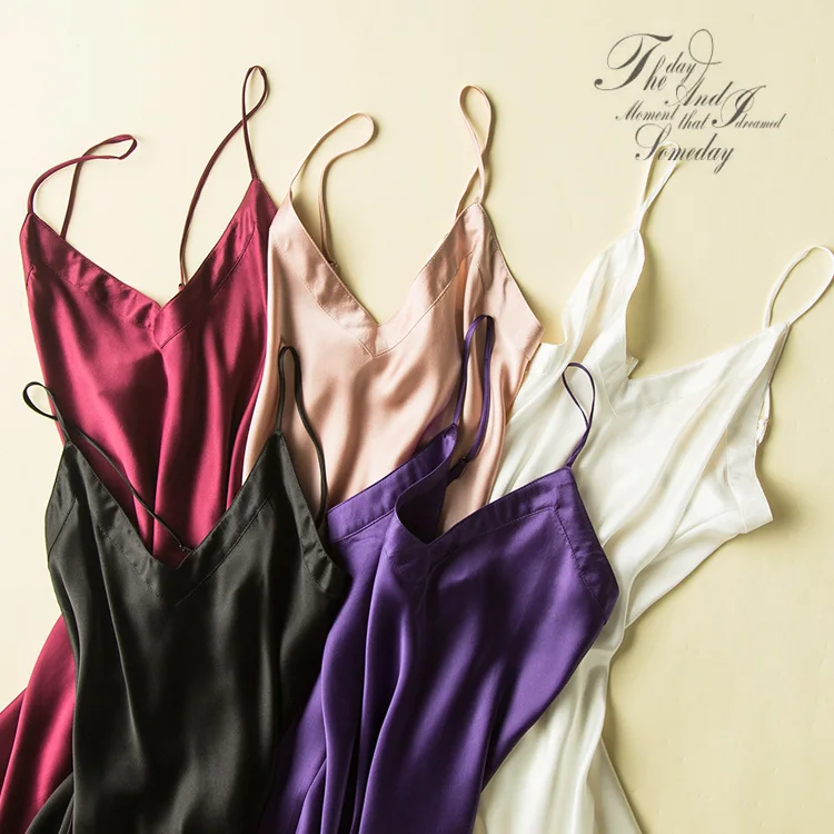 100% reiner seide nachthemden frauen Sexy v-ausschnitt nachtwäsche Hause kleider SEIDE nachthemd SATIN nachthemd Sommer stil rosa weiß schwarz
