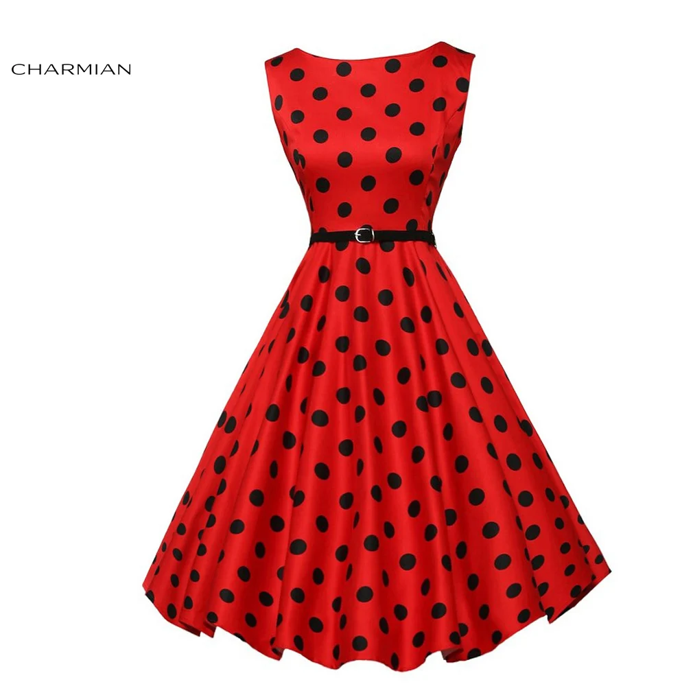 Charmian Elegant 1950 s Vintage Floral Print Sleeveless Round Neck Casual Party Swing font b Dress