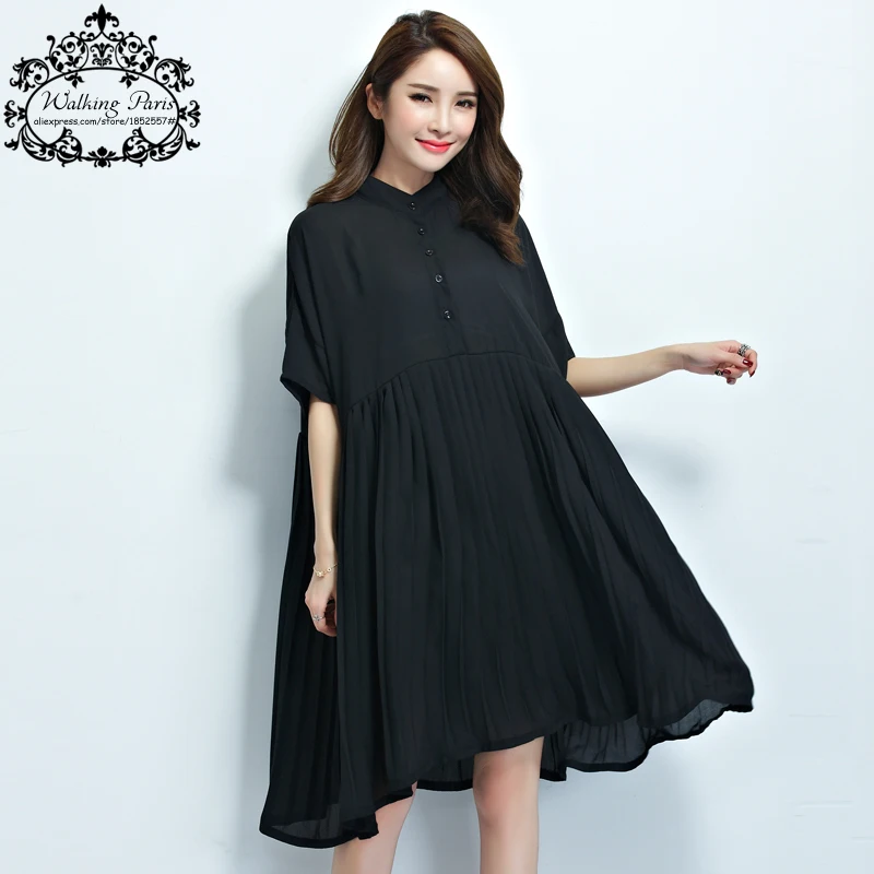Plus Gre Neue Frauen Chiffon Bluse Sommer Stil Kleid Solide weibliche Kleidung Oansatz Groe Gre Mode Midi Kleider Schwarz Rot Tops