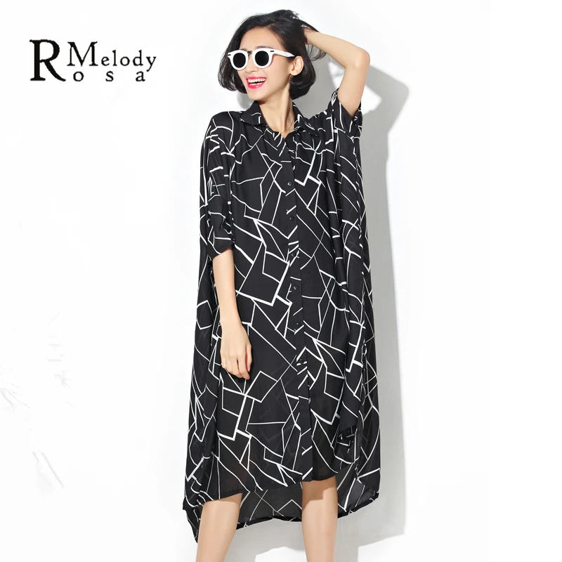 Damenmode Plus Gre Lange Bluse Kleider Sommer Europischen Super Lockeren Stil Schwarz Mehr In der Hinten Kleid ( R. Melody DS0133)