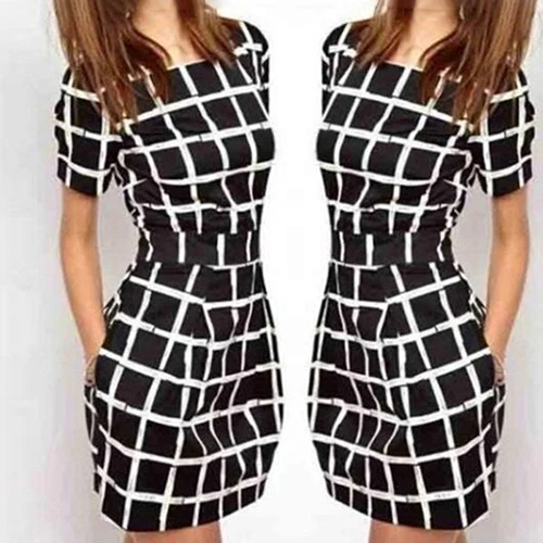 Frauen Sexy Kurzarm Plaid Schlank Bodycon 32720436904