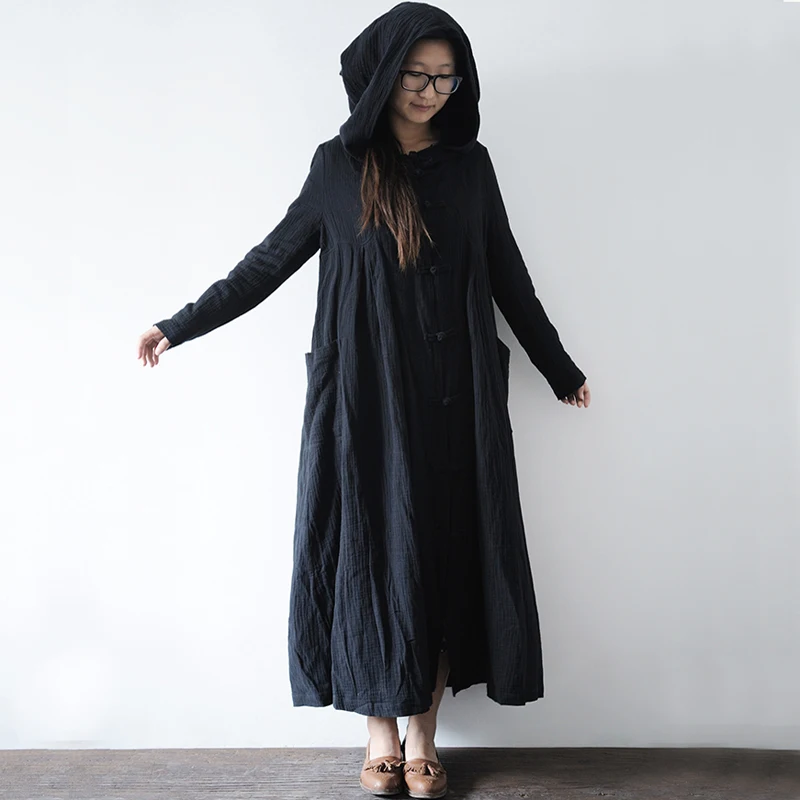 Herbst Kleid Plus Gre Freistich Lose Taille Baumwolle Leinen Schwarz Halloween Mntel Kapuze und Capes Halloween Kostme fr Frauen