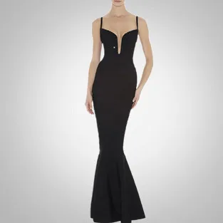 Neue Ankunft Mode Frau Verbandkleid Sexy Perlen Lange Maxi Bodycon Cocktail Party Tiefem v-ausschnitt bodenlangen Schwarz HL