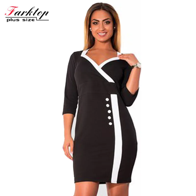 Schwarz 2016 herbst mode frauen casual bodycon festes kleid hohe taille vertrags farben v-ausschnitt party kleider 5xl 6xl plus gre
