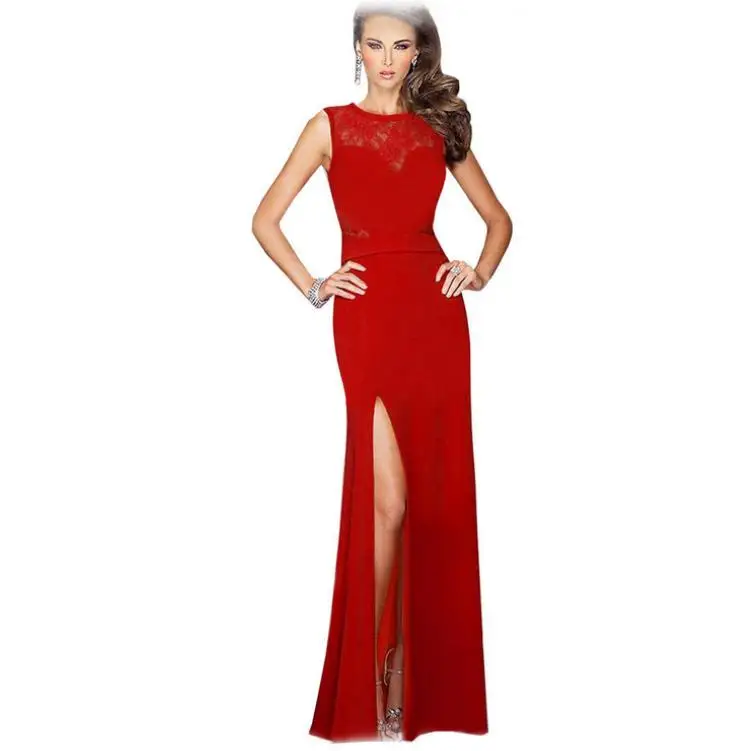 buy-now Sexy elegante Spitze Sleeveless Seitenschlitz rot schwarz Frauen lange Kleider Promi Cocktail Party Maxi Bandage Kleider Sommer Stil
