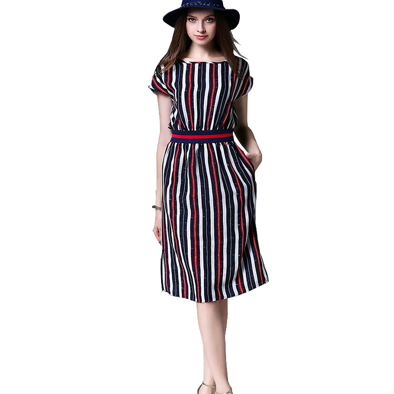 2016 sommer Kurze Kleid Frauen Rot Und Schwarz Gestreiften Flgelhlse der Elastischen Taille Knielangen Etuikleider Vestido Casual Jurken