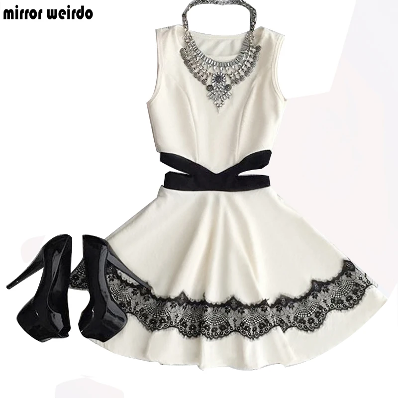 2016 sommer Spitze Sexy Womans Kleidung Bodycon kurzes Kleid Schwarz Party Club Kleider Wei Solide Bro Kleid