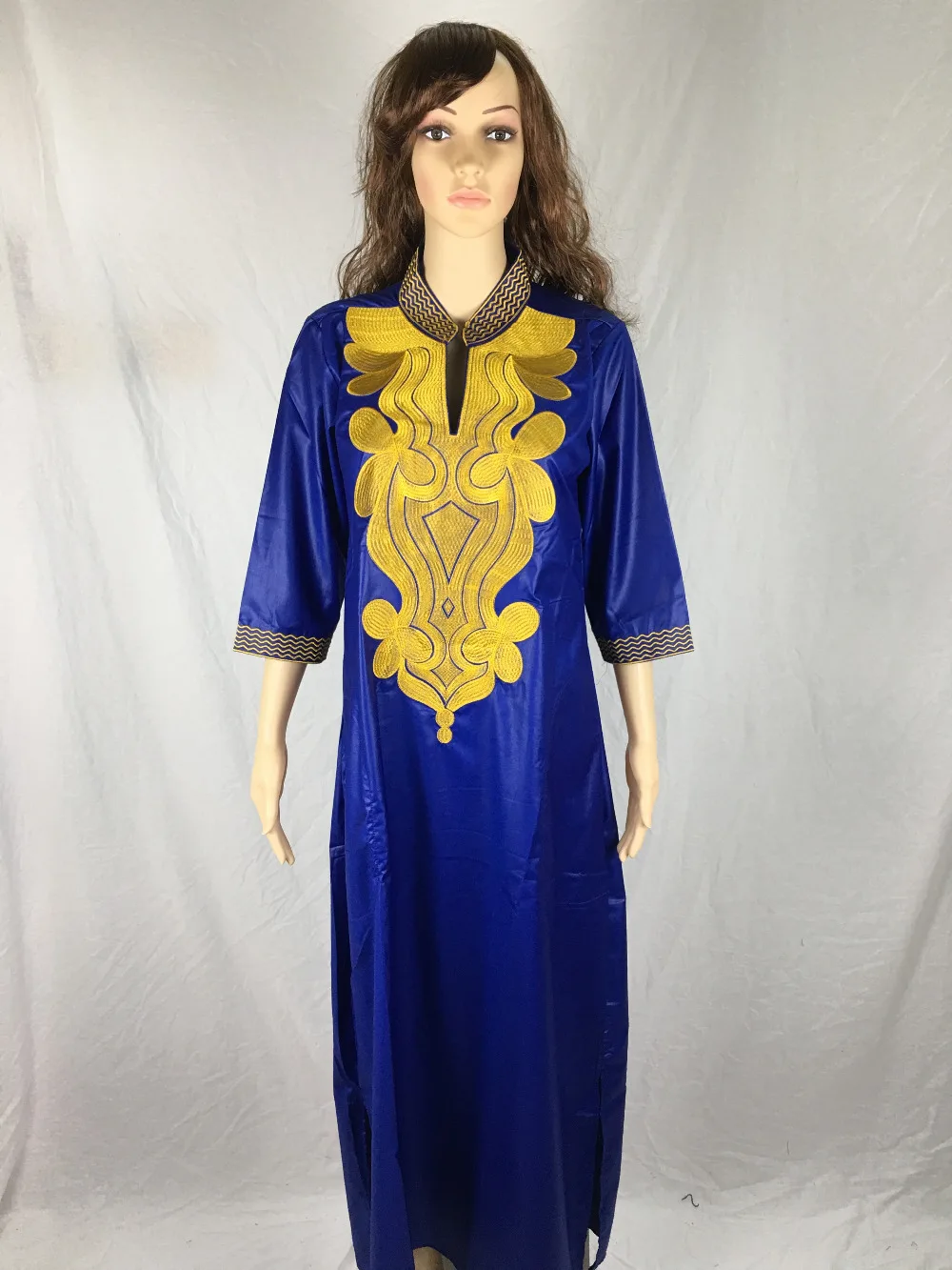 buy-now Afrikanischen kleid new african fashion alle schwarz weiche glatte material stickerei kleid design nur ein langes kleid ohne schal