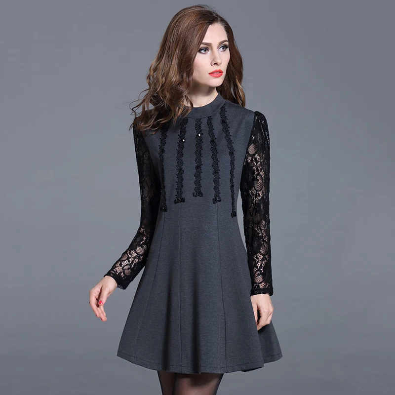 Frau Kleid Schwarz Spitze 4XL Plus Gre Kleider Vestidos Mujer 2016 Jurken Ukraine Herbst Kleid Dashiki Ropa Mujer 72168