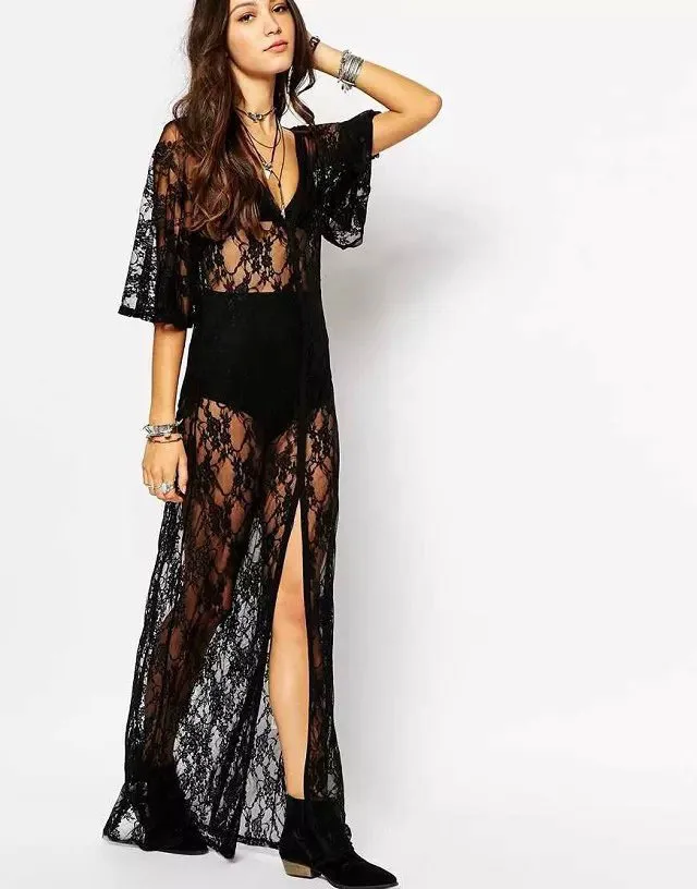 Frauen Sexy Spitze Kleid abdeckt lange Kleider Schwarz Damen bodenlangen Strand Kleidung SML neue Sommer 2016 Europa Mode heißer Verkauf