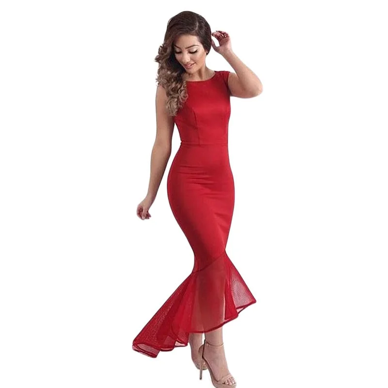 Long Fishtail font b Dress b font Red font b Black b font O neck Sleeveless