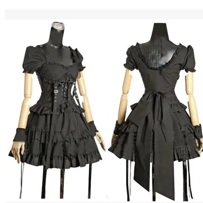 buy-now Neue Baumwolle Frauen Kurzarm Schwarz Victorian Corset Gothic Lolita Kleid Ballkleid Customized Kleider