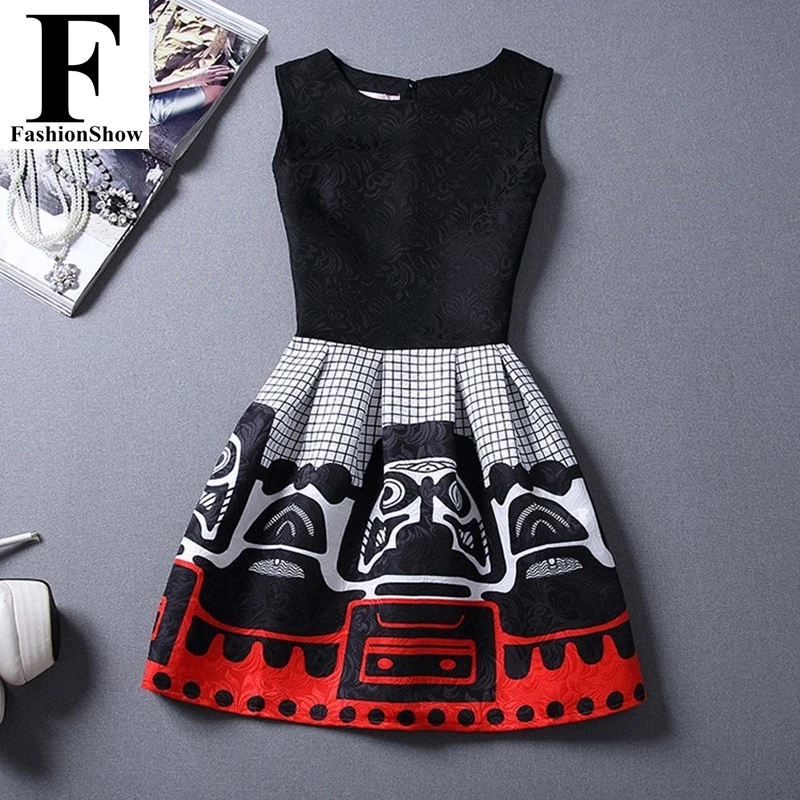 Neue Casual Frauen Sommerkleid 2016 Schwarze rmellose Druck Party Kleider Damen Vintage Style sommerkleid weibliche vestidos de festa