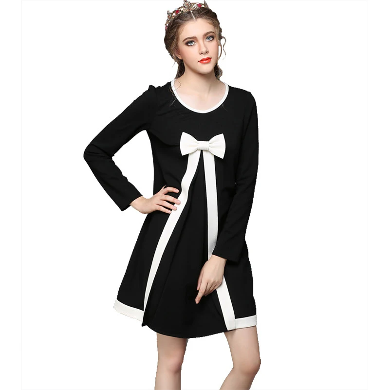 buy-now Neue Plus Gre Nette Frauen Kleid 7XL Herbst Schwarz und Wei Patchwork Bogen Frauen Vestidos 4XL Elegante dnne Lange Kleider
