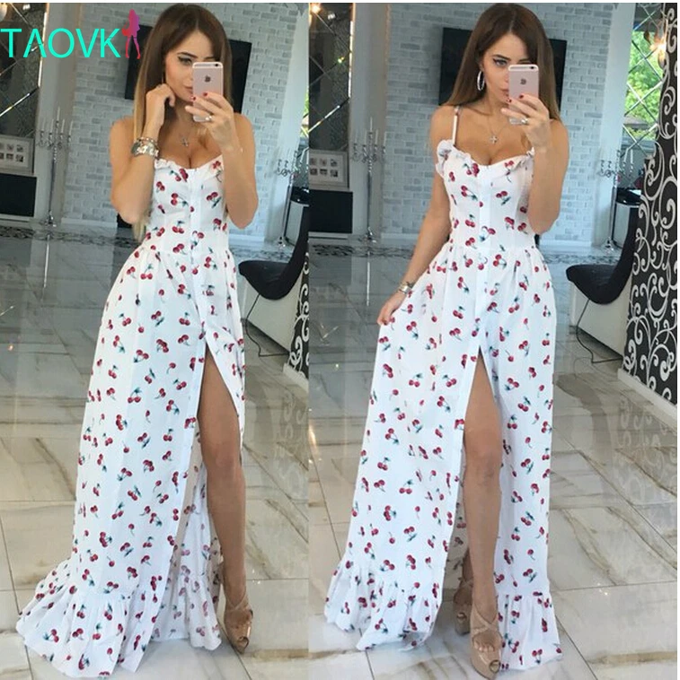 Russian famous TaoVK fashion 2016 summer font b women b font long Cherry printing font b