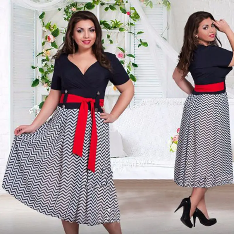 2016 frauen mode patchwork v-ausschnitt sommer kleid kurzen und regualr mit schrpen mantel lssig plus gre frauen Schwarz kleid