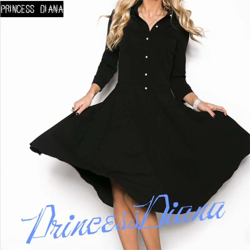 2016 neue Herbst Maxi Frauen Kleid Damen Schwarz Knielangen Elegante Freizeithemd Kleider
