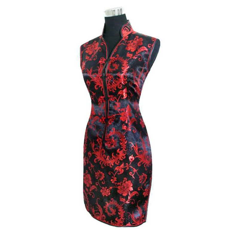 buy-now Sexy Black red Chinese tradition Ladies Cheongsam Qipao dress Wedding Mini Club Dress Size:S M L XL XXL XXXL
