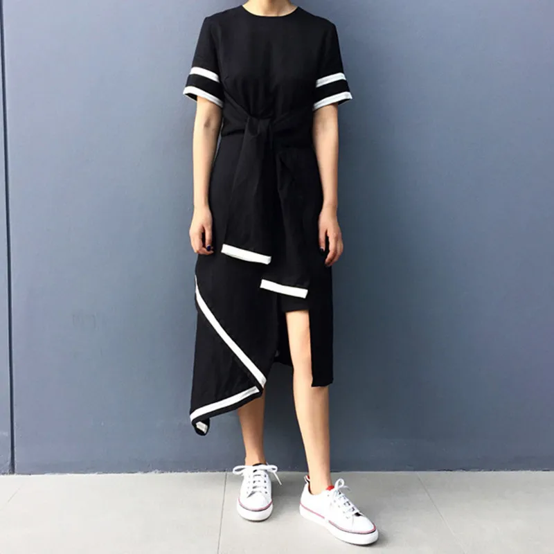 buy-now [Soonyour] 2016 heie Neue Unregelmige Solid Color wei schwarz langes kleid frauen kurzarm mode 4LH0721