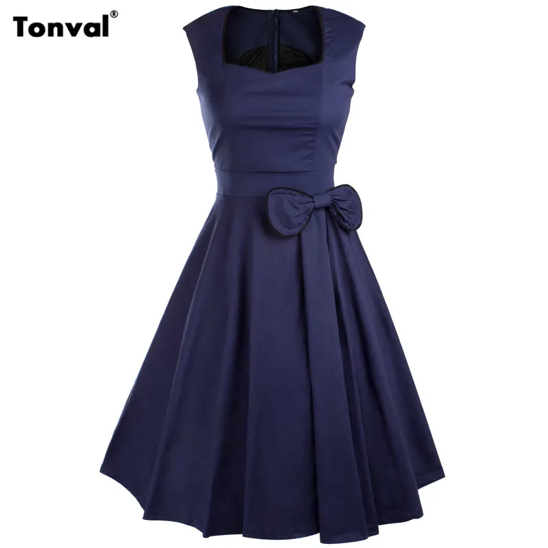 Tonval 2016 font b Women b font Bow Vintage font b Dress b font Summer Sexy